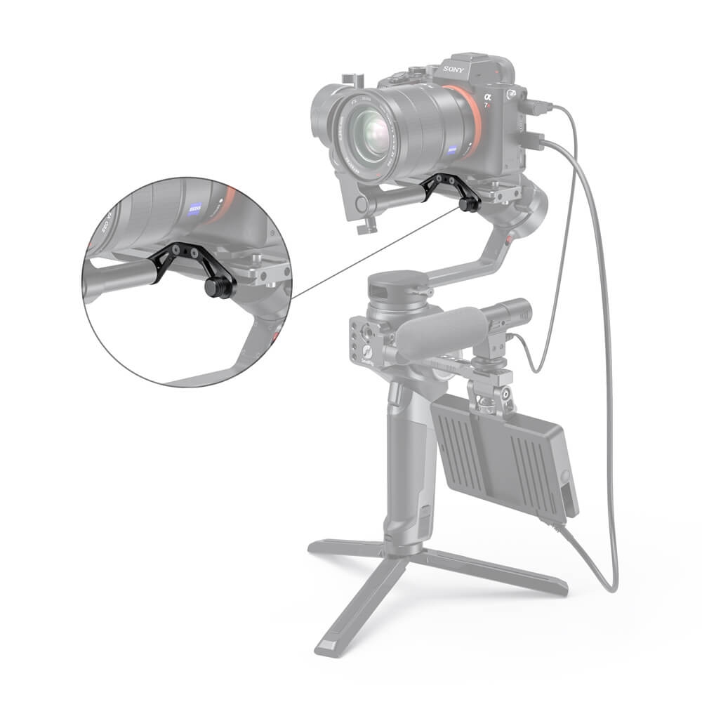 SmallRig Focus Motor Rod Mount for Moza AirCross 2 2828 is designed to support focus motors or other accessories on each side on AirCross 2 gimbal. The rod mount secures to the Manfrotto camera plate with two m3 screws. Featuring a m3 thread in front which is compatible with the original lens support. Optional SmallRig Riser Plate 2827 is sold separately if needed. The distance of the rod clamp center is standard 60mm.