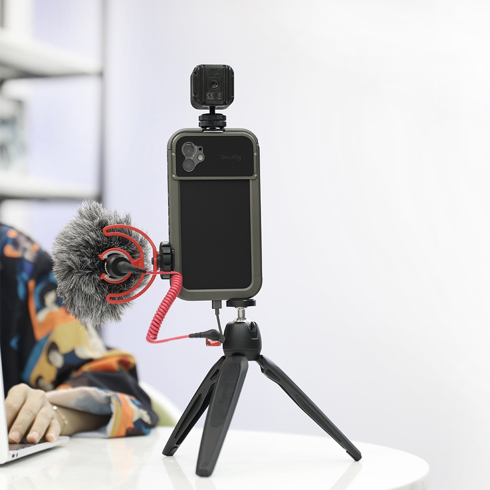 SmallRig Pro Mobile Cage for iPhone 11 2774 is a multi-function mobile phone cage specially designed for your iPhone 11, to help achieve a higher level of mobile phone photography, videography, vlogging, live streaming, interviewing, and filmmaking. The cage comes with two cold shoe mounts to support a microphone and a LED light. It also features multiple 1/4 threaded holes in the top, bottom, left and right sides to attach different accessories on your needs, like SmallRig Aluminum Side Handle for Smartphone Cage HSS2424, SmallRig Mini Top Handle for Lightweight Cameras (1/4”-20 Screws) HTS2756, SmallRig Tabletop Mini Tripod BUT2429, etc. It supports both horizontal shooting and vertical shooting. Inbuilt EVA shims help absorb shocks and prevent your phone from scratching. The Lens Mount on the back enables you to easily attach any lens to your phone. The newly designed Quick-Lock ensures a tighter fit and quicker way to mount/dismount your phone, and will be safer and more stable. Your phone will not pop out due to an accidental touch after being locked. The cage is lightweight and easy to carry.
