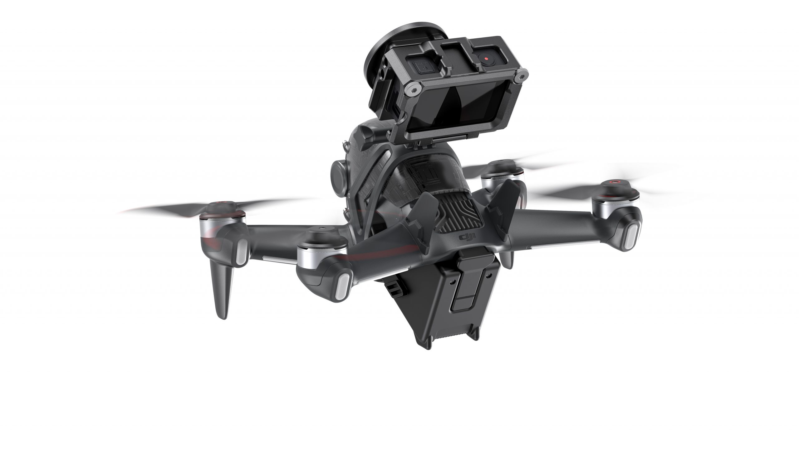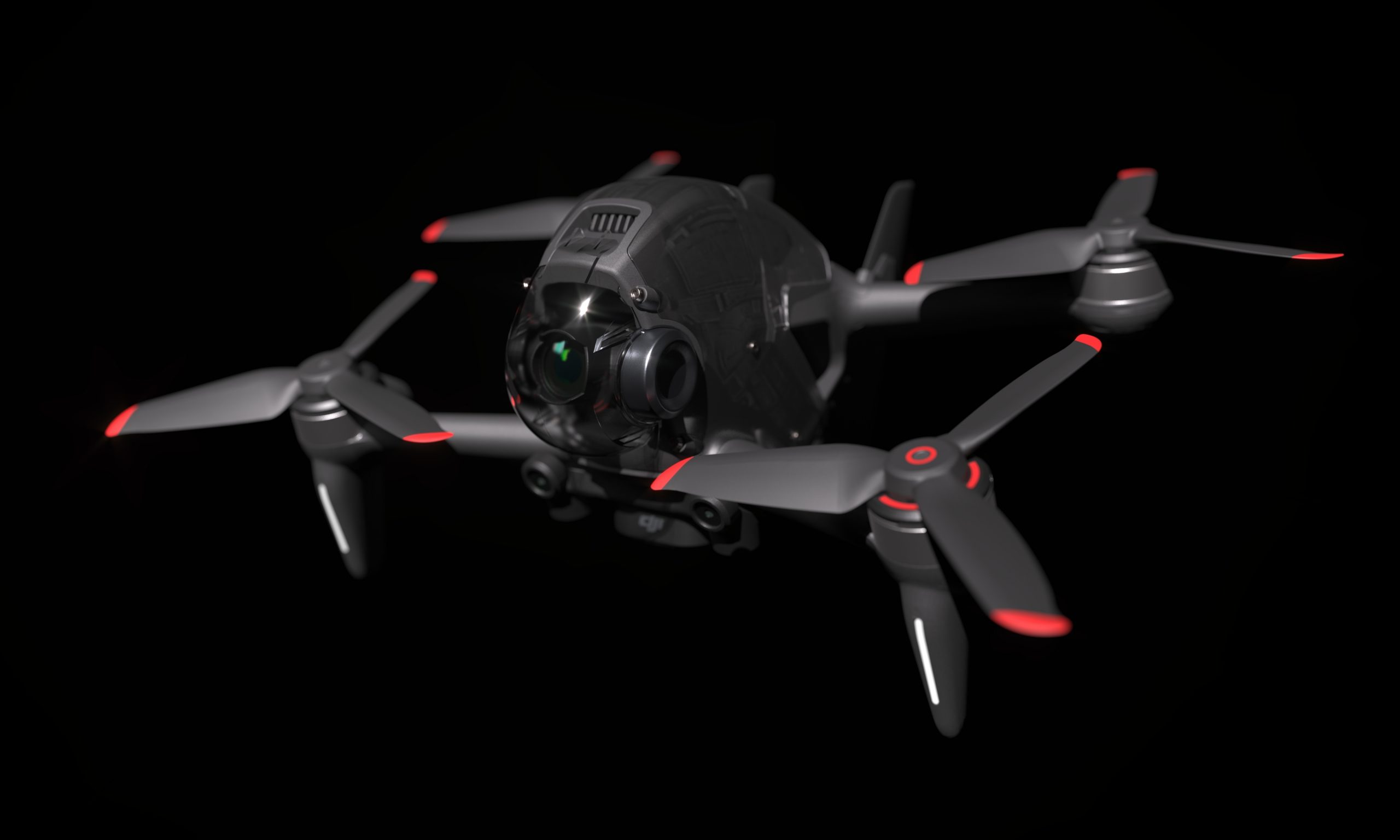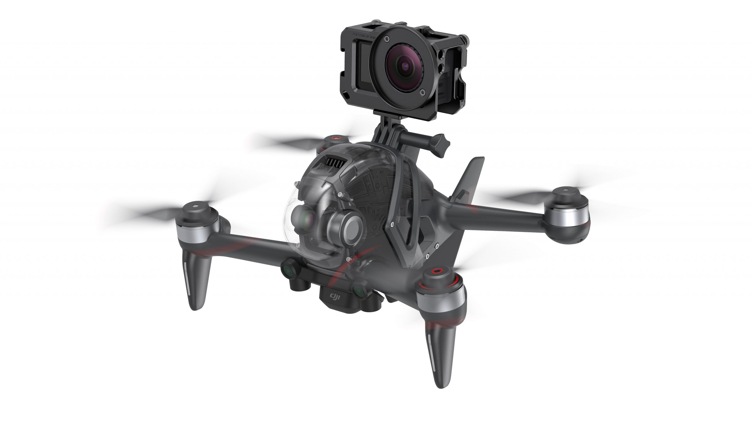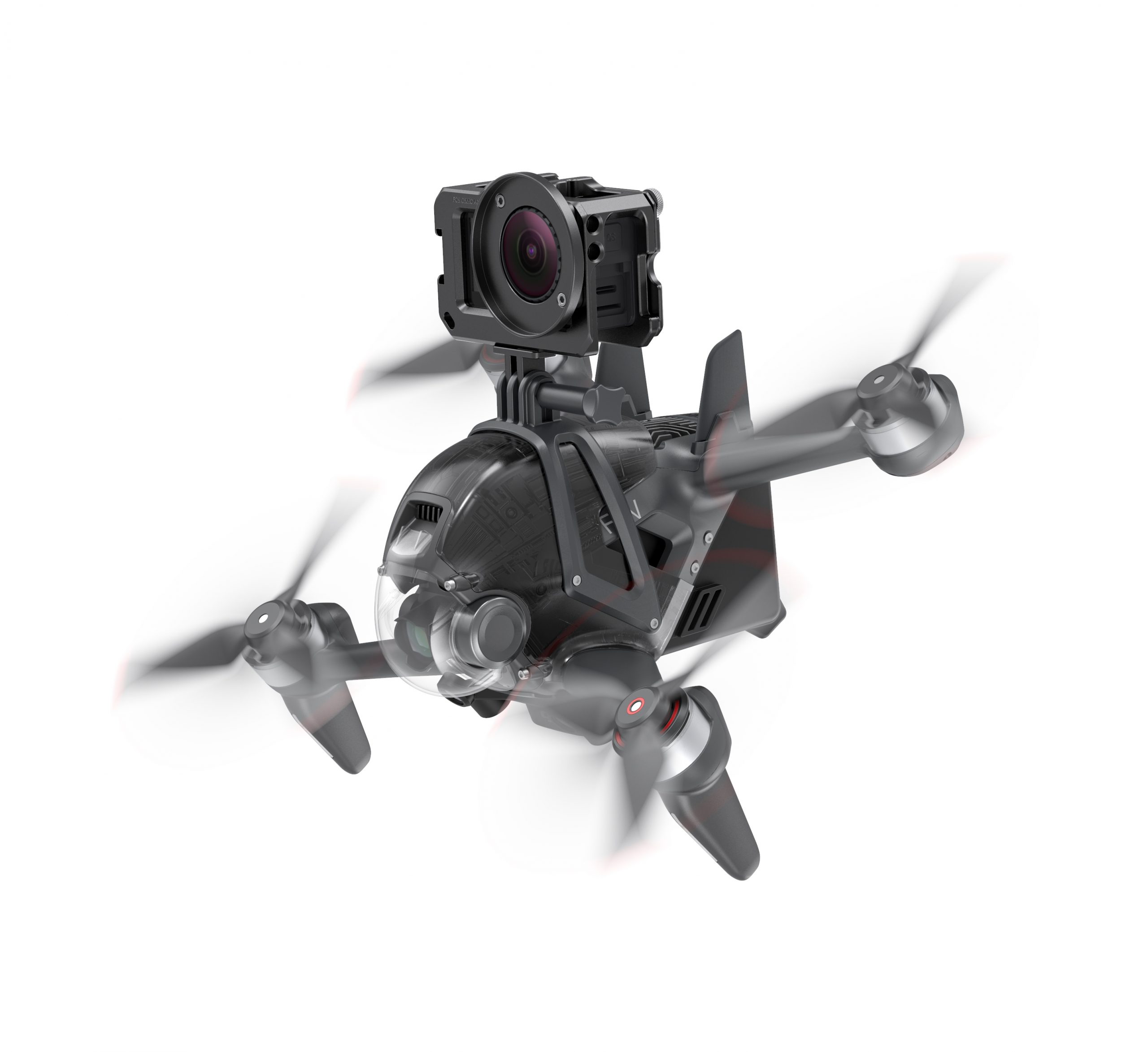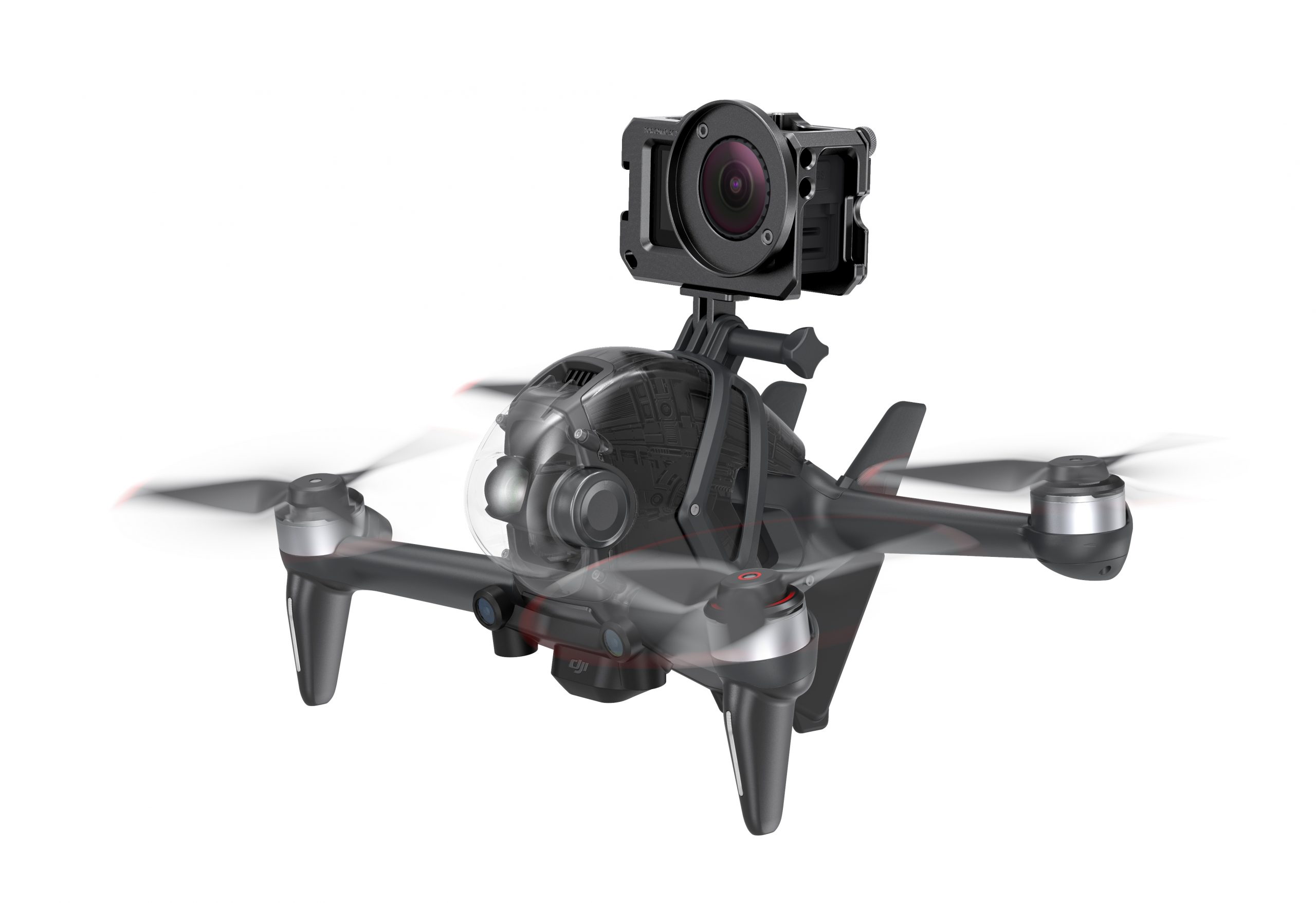 1. Transparent gimbal head protector fixed to DJI FPV by 3M sticker.