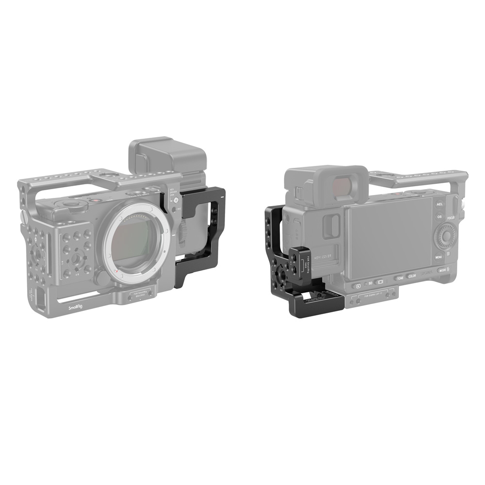 SmallRig Cage for SIGMA ELECTRONIC VIEWFINDER EVF-11 3226 is designed to provide protection and multiple accessory mounts for SIGMA EVF-11. The cage shall work with SIGMA fp camera cage 3211, to which it secures via a 1/4”-20 screw on the bottom and an M2.5 screw on the front. It features several 1/4”-20 threaded holes and 3/8”-16 locating holes on the left side for mounting Cable Clamp 1693, Side Handle HSS2426, and Magic Arm 2115.