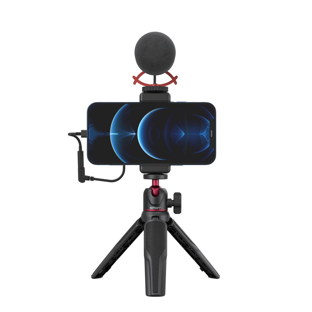 The kit consists of a portable vlog tripod, standard phone clip, and Wave S1 lite microphone, being compact enough for street shooting. The tripod is connected to the phone clip with a 1/4 screw, and the phone clip comes with a single cold shoe mount, free to expand more equipment. The tripod is 16cm in folded size and 1.5kg safely loaded, and the microphone is cardioid pickup patterned, which effectively reduces background noise scattered around it. No battery is required, just plug in and play.