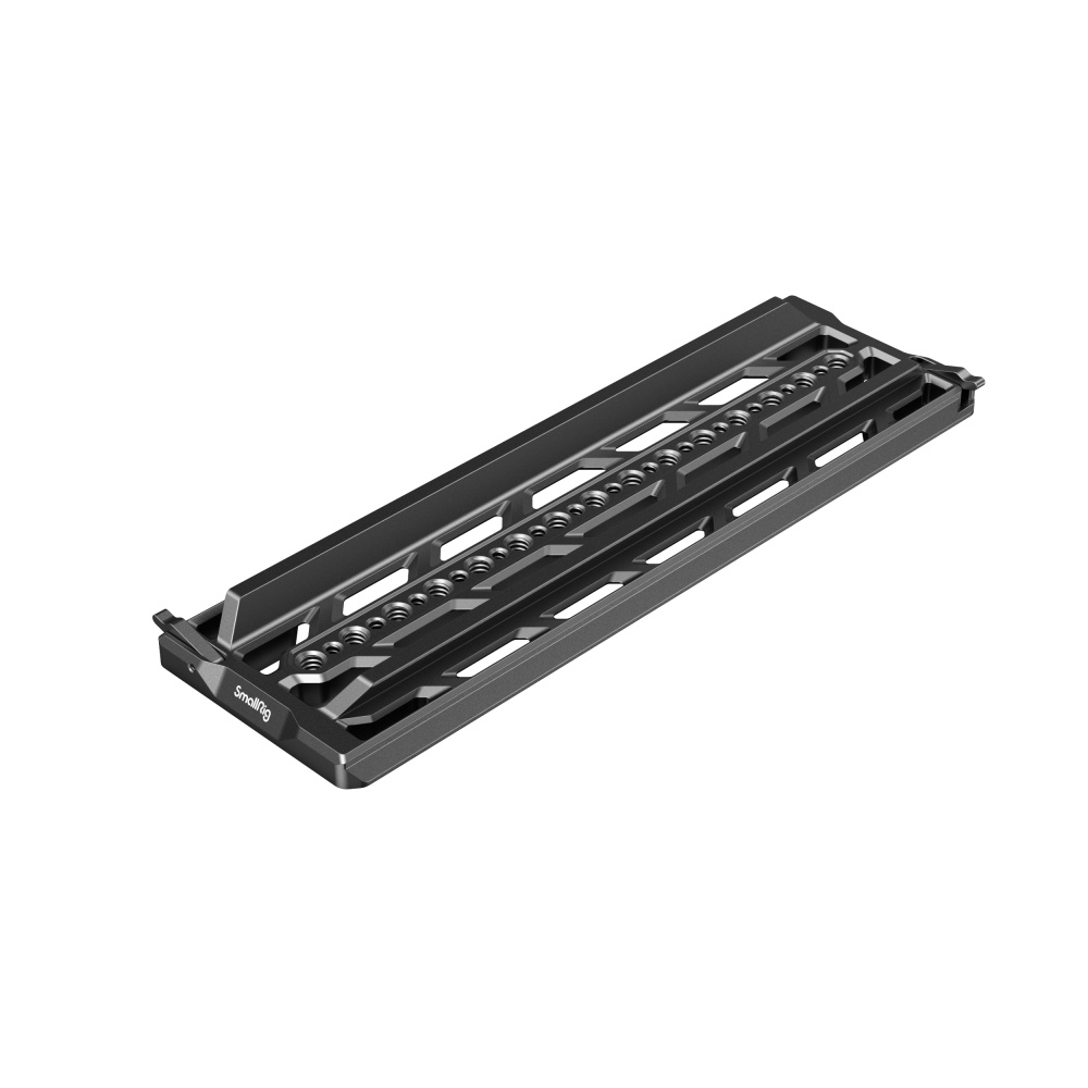 SmallRig 12” ARRI Dovetail Plate 3772 supports ARRI standard dovetail baseplate, such as SmallRig Baseplate 3067, 1642, and O’Connor fluid-head, like O’Connor 2060, O’Connor 2575, O’Connor 120EX, Sachtler Cine 30. It features a lightweight cutout design while maintaining its strength. The plate comes with multiple 1/4″-20 & 3/8”-16 threaded holes for attaching other tripods and an anti-off button on each end to enable quick and secure installation while removing of camera.