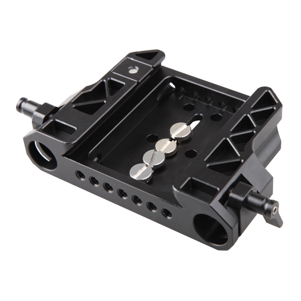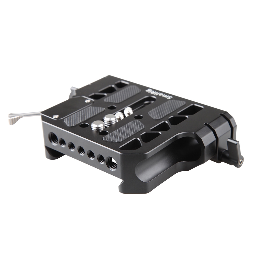 SMALLRIG ARRI Dovetail Clamp with 19mm Rod Clamp 1757 is standard ARRI dovetail clamp with 19mm rod clamp.It fits for ARRI standard dovetail perfectly.The 19mm rod system at the bottom help to attach various camera accessories.With the side lever, it is easy and convenient to lock and release the dovetail plate from ARRI standard plate.With the rubber pads, it can effectively prevent camera from scratched.The 55mm groove on the top have a wide range of compatibility.And there are many 1/4” holes for other accessories attachment.It is compact and functional.