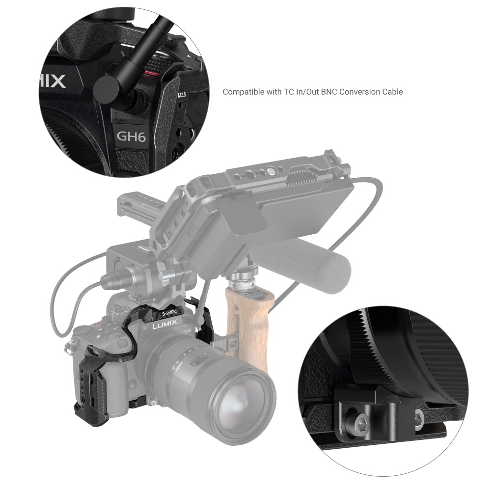 3. For HDMI cable clamp, the SmallRig “Black Mamba” Series Cage Kit for Panasonic LUMIX GH6 3441 is recommended.