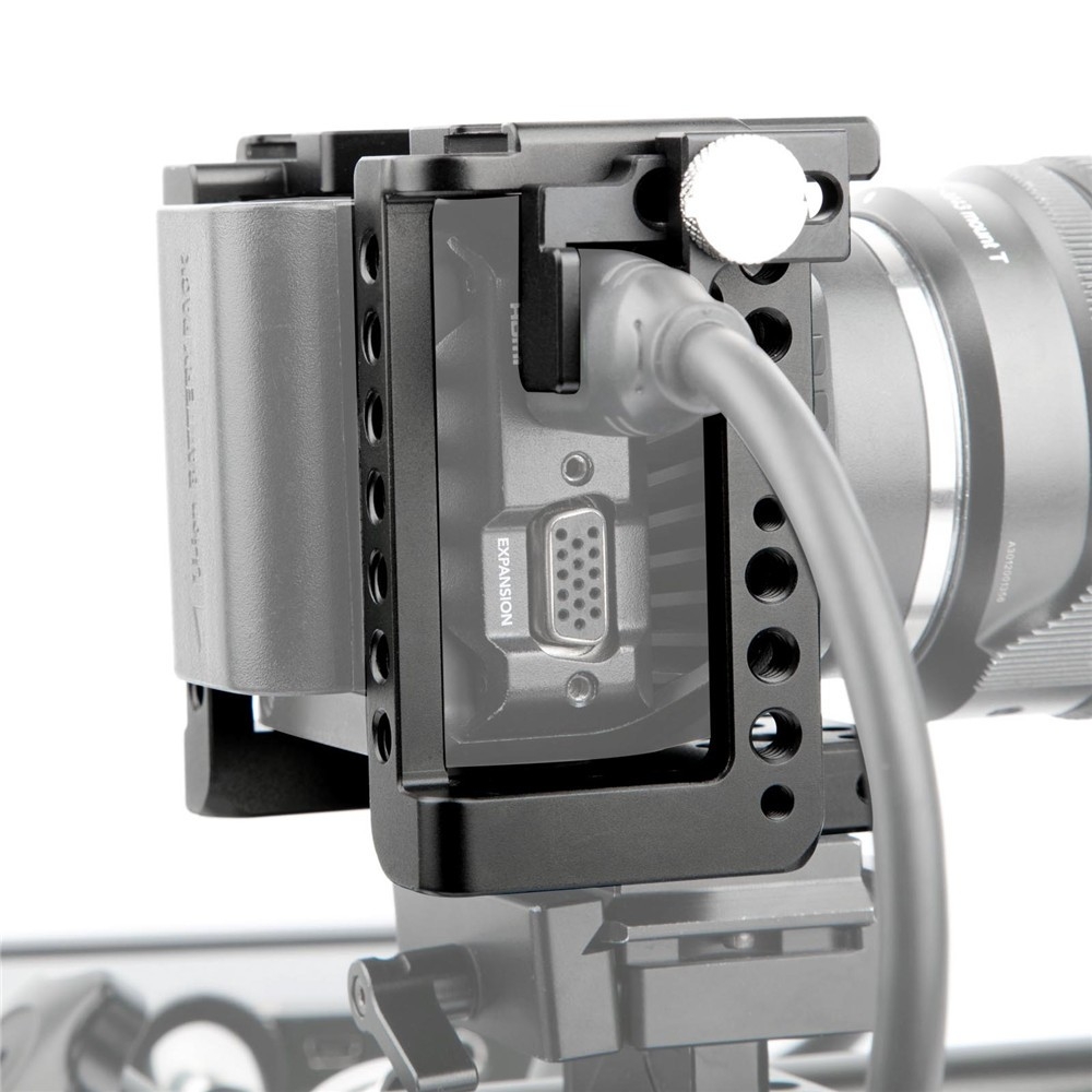 SMALLRIG BMMCC BMMSC Cage Accessory Kit for Blackmagic Micro Cinema Camera 1920 includes a BMMCC/BMMSC Cage and a HDMI cable. It perfectly holds your camera inside and leaves all buttons available. It is made of one piece of the high quality aluminum, so that the cage is lightweight. There are NATO-style side rails and two cold shoe mounts which can mount more accessories, like microphone and wireless receiver, etc. Besides, SMALLRIG Lock HDMI Protector 1693 can be mounted to protect your HDMI cable port.