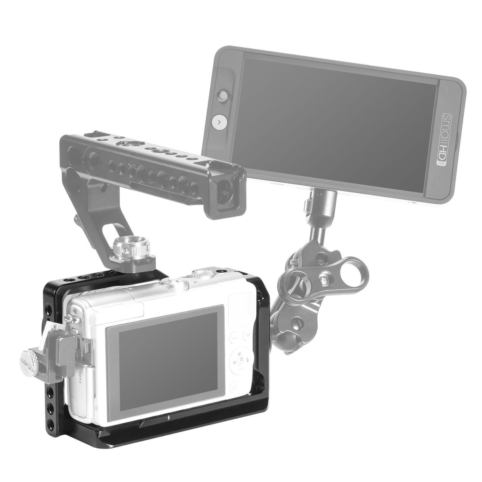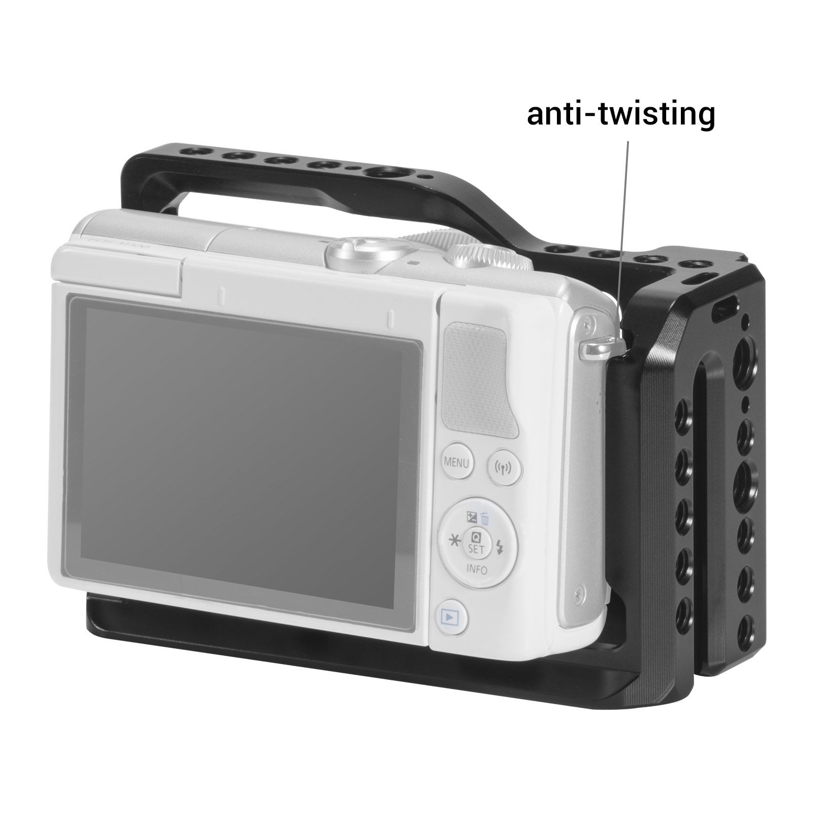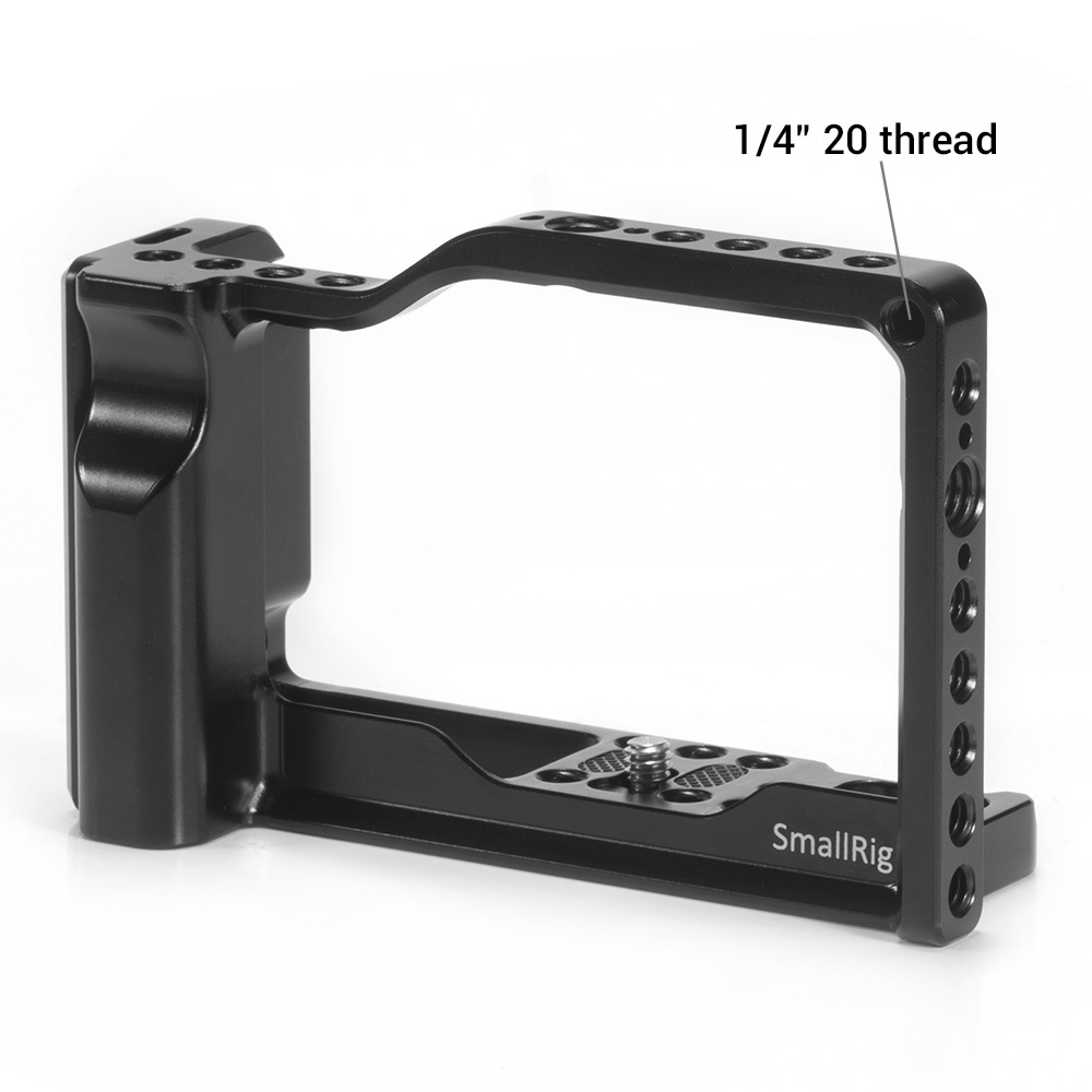 SmallRig Cage for Canon EOS M100 CCC2382 is a form-fitting full cage. It mounts to the camera’s tripod socket with a 1/4’’-20 screw, with anti-twist design and rubber cushion preventing wiggles. A larger grip moulded into the cage makes it more comfortable to hold the camera. It comes with multiple 1/4’’-20, 3/8’’-16 threaded holes and ARRI locating holes allowing mount of accessories. On the right side of the cage is a built-in NATO rail. Attach SmallRig Cable Clamp 1822 to protect the HDMI cable and port. The cage features a built-in Arca Swiss QR plate on the bottom which is super convenient to mount on Arca-compatible tripods or baseplates. It features a flat screwdriver on the bottom for quick installation. The cage ensures full access to buttons, ports, battery and flash of the camera.
