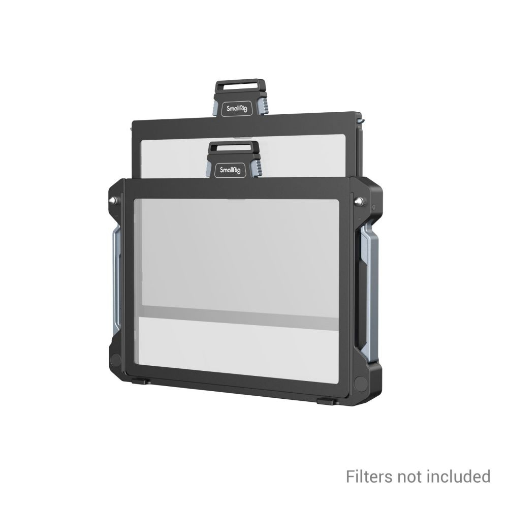 SmallRig Filter Frame Kit (4 x 5.65″) 3649, accessories for Star-Trail and Revo-Arcane series matte box, is designed to balance exposure under complex light environment by allowing installing multiple slide-in filters. It comes standard with two filter frames (4 x 5.65″) and one stackable Clamp-On Back. Among them, the 4 x 5.65″ filter frames come with aluminum alloy frame and anti-off safety lock that allows quick release and secure locking of filters as well as prevents fingerprints; the stackable Clamp-On Back, made of aluminum alloy and installed via magnets, has quick-release safety lock that works well with matte box, VND Filter Kit 3651 and Filter Frame (4 x 4″) 3648. The kit also adopts a variety of quick-release designs to give the greatest quick release convenience to users of Star-Trail and Revo-Arcane series matte box.
