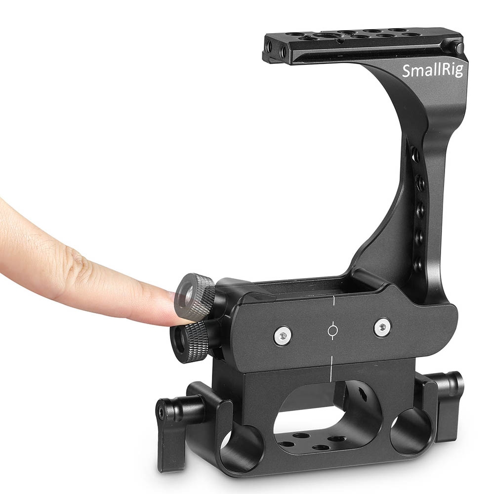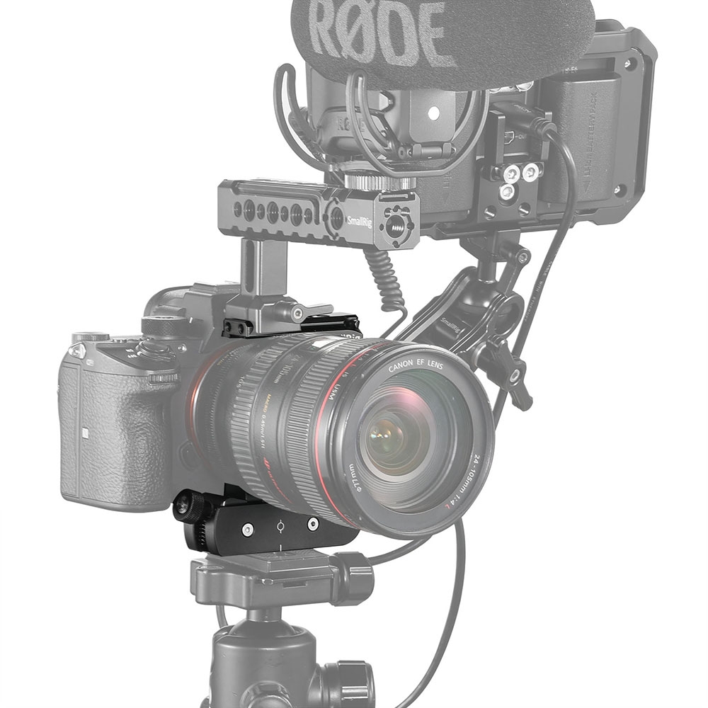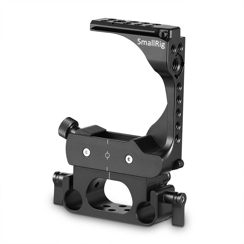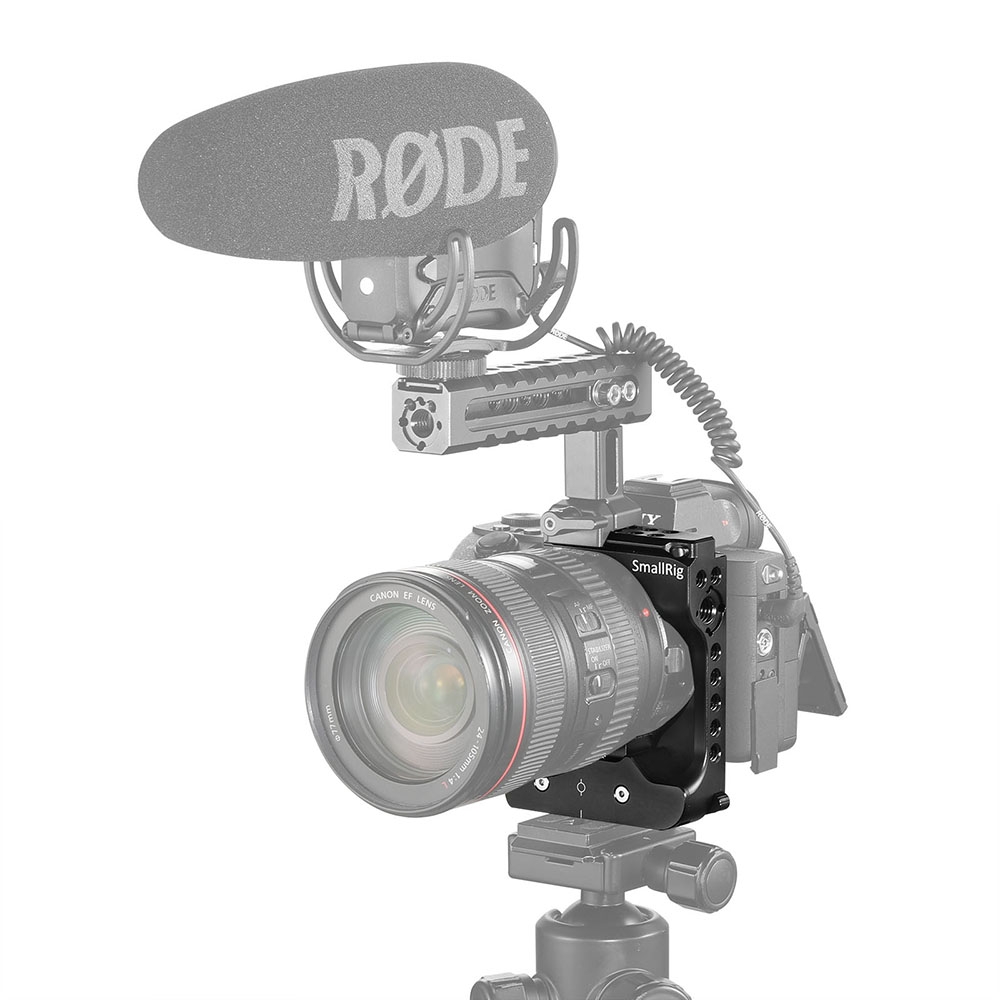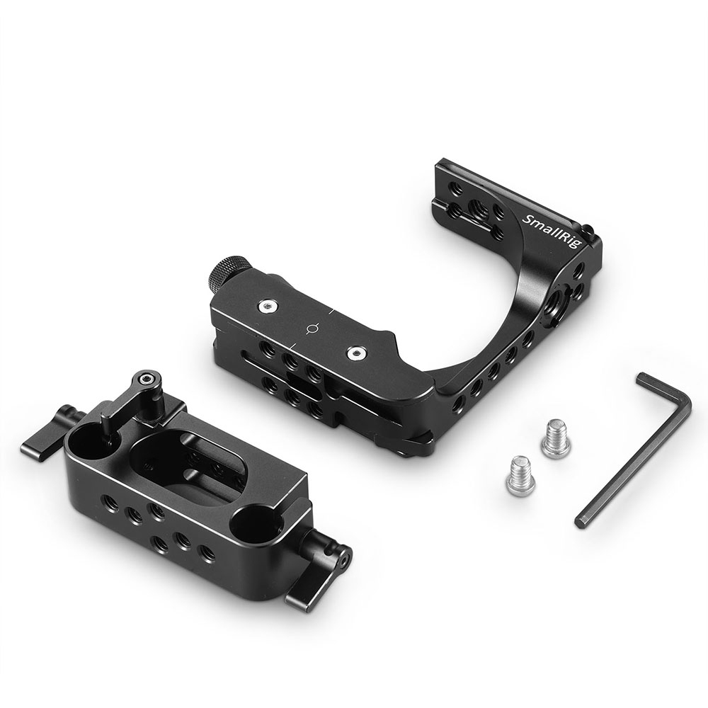 SmallRig Half Cage for Metabones Lens Adapter 2033 is exclusively designed for Metabones EF-E mount lens adapter and it is compatible with Sony a6000/a6300/a6500 and a7/a7ii/a7iii series camera .The half cage was designed to be a “C” shape, to quick release the metabones feet, it enables to quick detach the camera and the lens from the cage. There are a built-in nato rail on the top, you can mount Top Handle 2027 for handheld shooting.The Arri locating points on the side could attach Magic Arm 2115 for monitor. The detachable rod clamp is utilized to attach dual rods 1690 to extend the possibilities of cage, and thus it ensures 85mm rod right. 1/4’’ threaded holes at the bottom are compatible with Arca and Manfrotto quick release plates which enables to switch in different tripods.