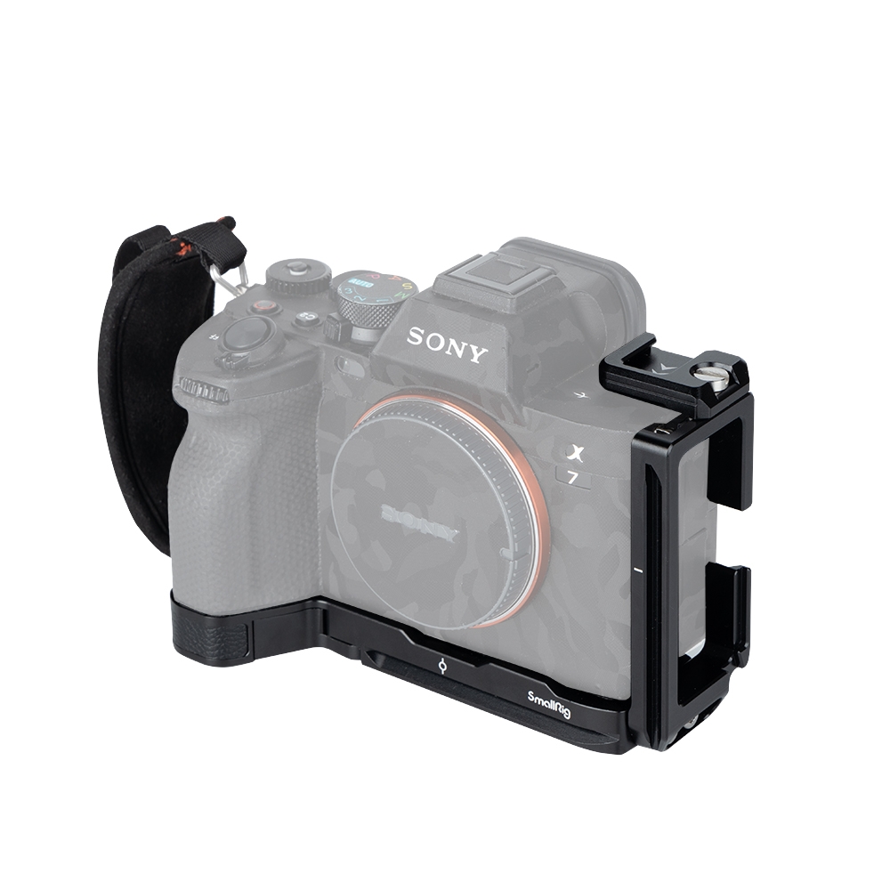SmallRig L-Bracket Kit for Sony Alpha 7R V / Alpha 7 IV / Alpha 7S III / Alpha 7R IV / Alpha 1 / Alpha 9 II 3856 is designed for enhanced grip feeling and quick switches between stabilizer shooting, and horizontal and vertical tripod shooting. It attaches to the bottom of the camera via a 1/4″ -20 screw and locating pin, with features of a built-in silicone pad to prevent scratches and twisting. There is a spindle spanner at the battery door which fits the camera curve and leaves room for a little finger for a comfortable grip; Embedded select genuine leather in the baseplate integrates into the camera body. The Arca-Swiss compatible baseplate and side plate come with a lens center mark, achieving quick switches between stabilizer(DJI RS 2/RSC 2) shooting, and horizontal and vertical Arca-Swiss tripod shooting. The side plate is extendable to allow attaching HDMI cables and adjusted back and forth to facilitate 180-degree opening and 90-degree rotation of the LCD screen of Alpha 7 IV / Alpha 7S III. The side plate comes with a cold shoe mount to attach accessories like a microphone and LED light. The cold shoe mount is available to be disassembled or adjusted in the direction, available to attach a monitor and action camera. Multiple 1/4″-20 threaded holes at the bottom support quick-release plates. In addition, the right strap slot can attach the included hand strap, achieving a stable shooting experience. It is easy to assemble and disassemble with two built-in Allen wrenches.