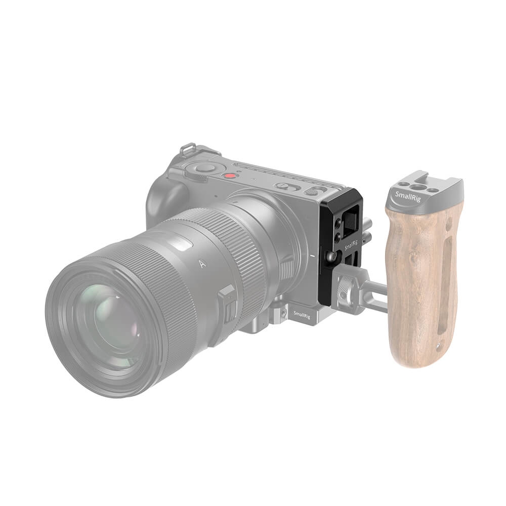 SmallRig Side Plate for Blackmagic Design URSA Mini/Mini Pro/Mini Pro G2 APS1854 is a multi-functional plate mounted to the right side of the camera. It adds mounting points including 1/4’’-20 and 3/8’’-16 threaded holes, ARRI locating holes, a cold shoe mount and a NATO rail. Before installing the plate, please take off the camera’s original rosette and attach to this plate; fix the plate to the camera by three M2.5 screws and an anti-twisting pin. It also features rubber pads inside preventing scratches.