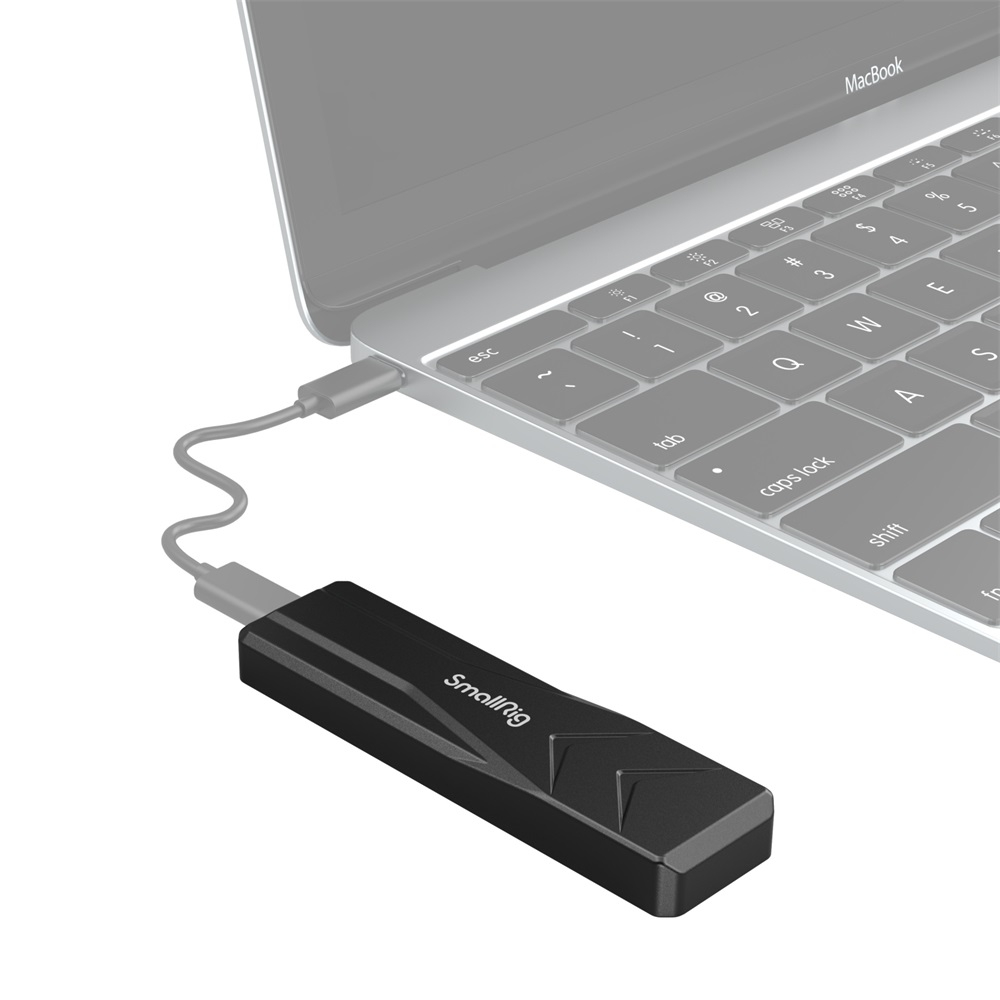 SmallRig M.2 SSD Enclosure SD-01 with a wide application range and excellent performance is made of aluminum alloy as a whole and its good heat dissipation performance is ensured in addition to its small size. SD-01 is equipped with a USB-C interface with USB3.1 GEN2 10Gbps rate specification. M.2 solid-state hard drive with three different specifications of 2242, 2260, and 2280 can be installed inside, supporting dual-protocol of NVME and NGFF (SATA). The enclosure supports the intelligent dormancy function, which is energy-saving and environmentally friendly, reducing the heating of the hard drive and prolonging the lifetime.