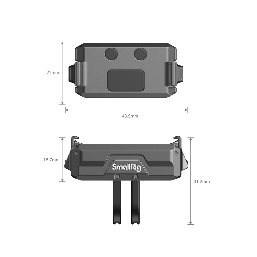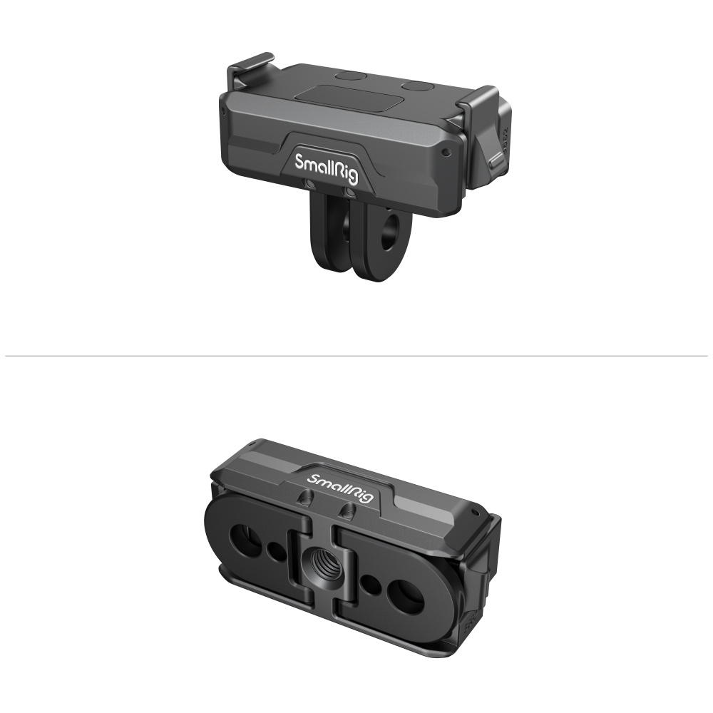 SmallRig Magnetic Adapter for DJI Osmo Action 3662B is designed to enhance the versatility of DJI Osmo Action 3 / 4 / 5 Pro cameras. Crafted from aluminum alloy, it features internal magnets, a 1/4″-20 threaded hole at the bottom, and a foldable dual claw interface for attaching action camera accessories. This adapter allows for the attachment of the camera or a cage to tripods, selfie sticks (4758), suction cup mounts (3566), handlebar mounting clamps (4191), and other compatible products.