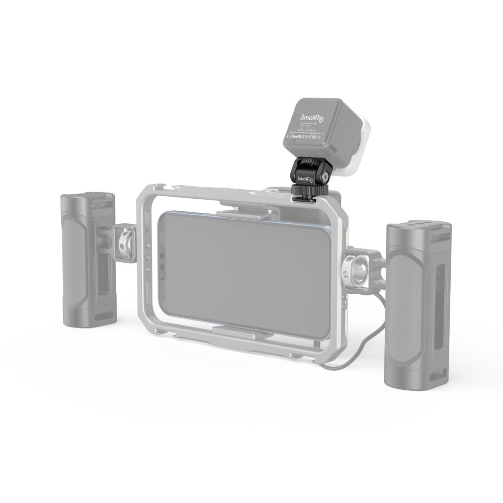 SmallRig Mini Cold Shoe to 1/4″ Screw Adapter 3577 is mainly used for expansion of small fill light, allowing 138° pan/tile adjustment, and stop at any position due to its damping structure, realizing precise lighting. It can be connected to the hot shoe at the top of the camera via the cold shoe port, or installed at the cold shoe port of cage or grip. The fill light can be connected via a 1/4″-20 screw hole. Anti-scratch pads are provided at the top to increase the locking friction and protect the device from scratch. Weighing only 20g, the adapter is compact and portable.