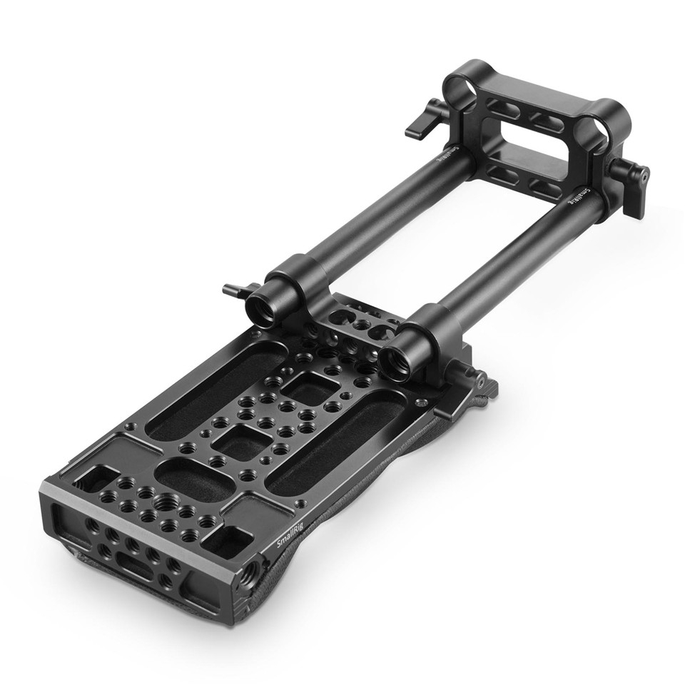This shoulder rig kit is compatible with both big and small cameras. It bridges the camera and the shoulder pad 2077, and offers another 15mm rod rail system to attach external batteries and counterbalance weight at the back. On the shoulder pad there are multiple 1/4″-20, 3/8″-16 threaded holes and Arri locating holes for camera accessories. This kit extends application of 15mm rod rail system while optimizing run-and-gun shoulder balance.