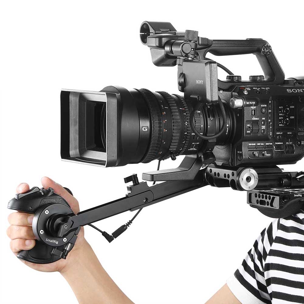 SmallRig Sony FS5 Handgrip Adapter with Extension Cable 2192 allows for the original Sony FS5 handgrip to be attached to an ARRI Rosette and relocate the handgrip in a proper position. The LANC extension cable 2201 is included allows to use the control button of the original handgrip if connected. The adapter features a M5 knob to lock it tightly and quick release your setup without obstructing the adjustment of the original grip. It is anti-off designed to ensure safe and has mark on it to prevent installation error. Optional Extension Arm 1870 allows to mount the adapter for handheld shooting on your shoulder to relocate the handgrip.