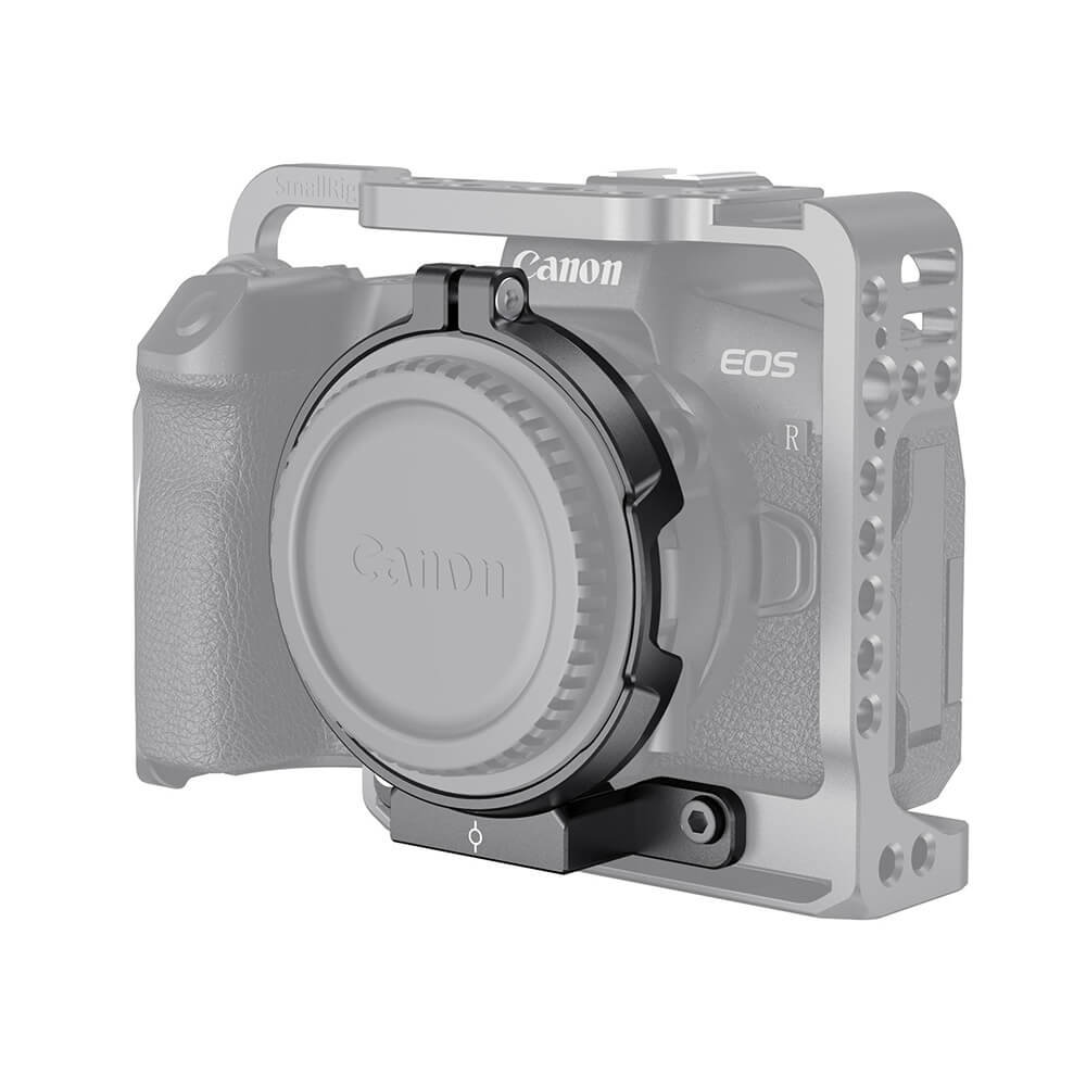 SmallRig Support Bracket for Canon Mount Adapter EF-EOS R BSA2696 is designed to support the mount and relief pressure when a heavy lens is attached to the camera. It works with SmallRig Cage or L-Bracket for Canon EOS R 2251/LCC2397, by mounting to the front of the camera using two M4 screws. The bracket does not obstruct the control ring, button or filter of the mount adapter.