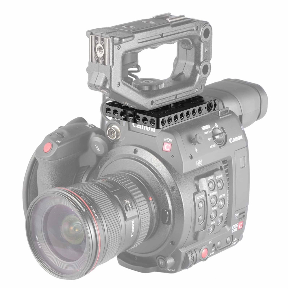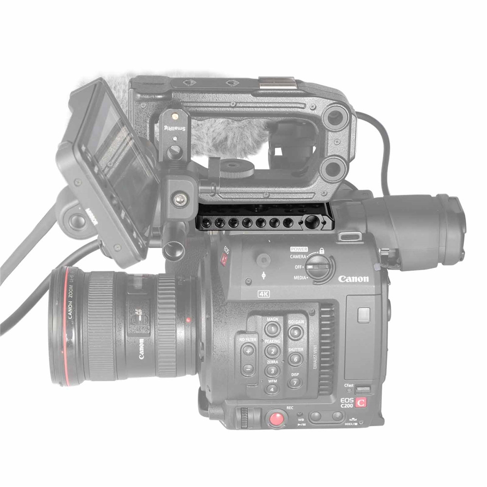 SmallRig Top Plate for Canon C200 Camera 2056 could be applied in many shooting scenarios with the gear racks on the top and at the side. It could be mounted on the top of camera via two 1/4″ counterbores.