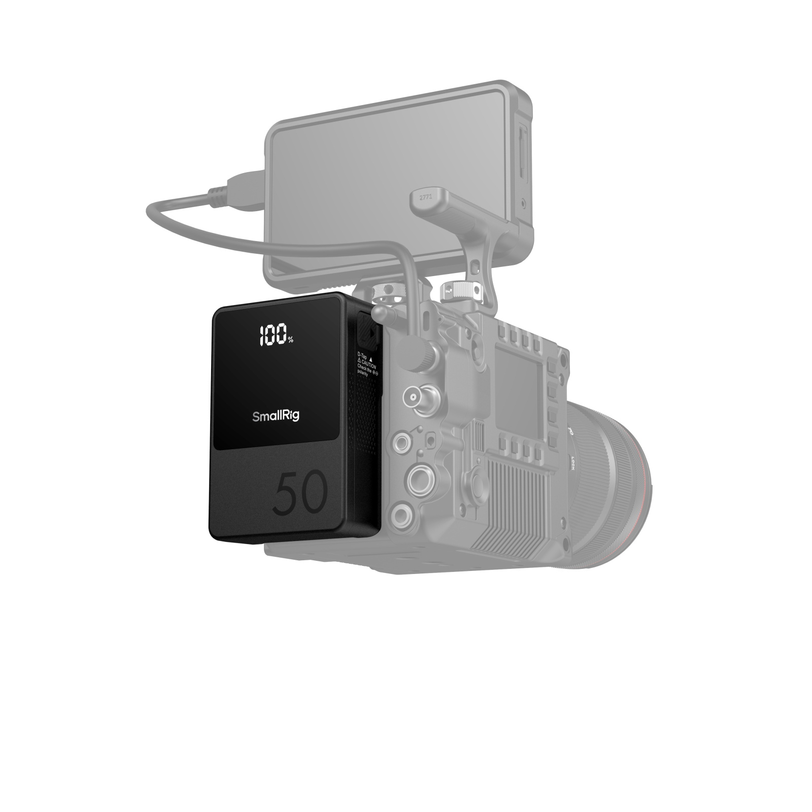 SmallRig VB50 mini V Mount Battery 3579B is a compact V-mount battery featuring a highly integrated design that effectively reduces the battery’s overall size, making it lightweight and portable. It features LG A-grade 18650 high-rate cells, ensuring accurate capacity, cycle performance, and exceptional stability. Designed to meet international standards such as MSDS / UN38.3 / IEC 62133 / UL2054 / UL 62368, it has obtained certifications including CCC / FCC / CE / RoHS / ISED / RCM / PSE / KC / BIS / TISI, ensuring safe and reliable operation for users. The battery is equipped with a BP, a D-Tap, an 8V-OUT DC, a 12V-OUT DC, a USB-C, and USB-A ports offering a wide range of interfaces for powering multiple devices simultaneously. This includes cameras, mirrorless cameras, monitors, transmitters, video lights, smartphones, tablets, laptops, and more, providing integrated and efficient power supply for all your needs. The battery features a highly integrated fast-charging protocol chip, MCU, boost/buck control chip, and Battery Management System (BMS), offering multiple protections including overcurrent, short circuit, over-temperature, and over-voltage. Additionally, it supports various fast-charging protocols such as PD, QC, and PPS, and enables 45W USB-C bi-directional PD fast charging. The battery exterior is made of fire-resistant PC material, heat-resistant, and flame-retardant, ensuring durability. It features an OLED screen that clearly displays battery level, remaining usage time, voltage, power, and other information, allowing you to accurately monitor the battery status. Featuring a suite of robust safety features, this device instills the confidence to capture every memorable moment with precision and reliability.