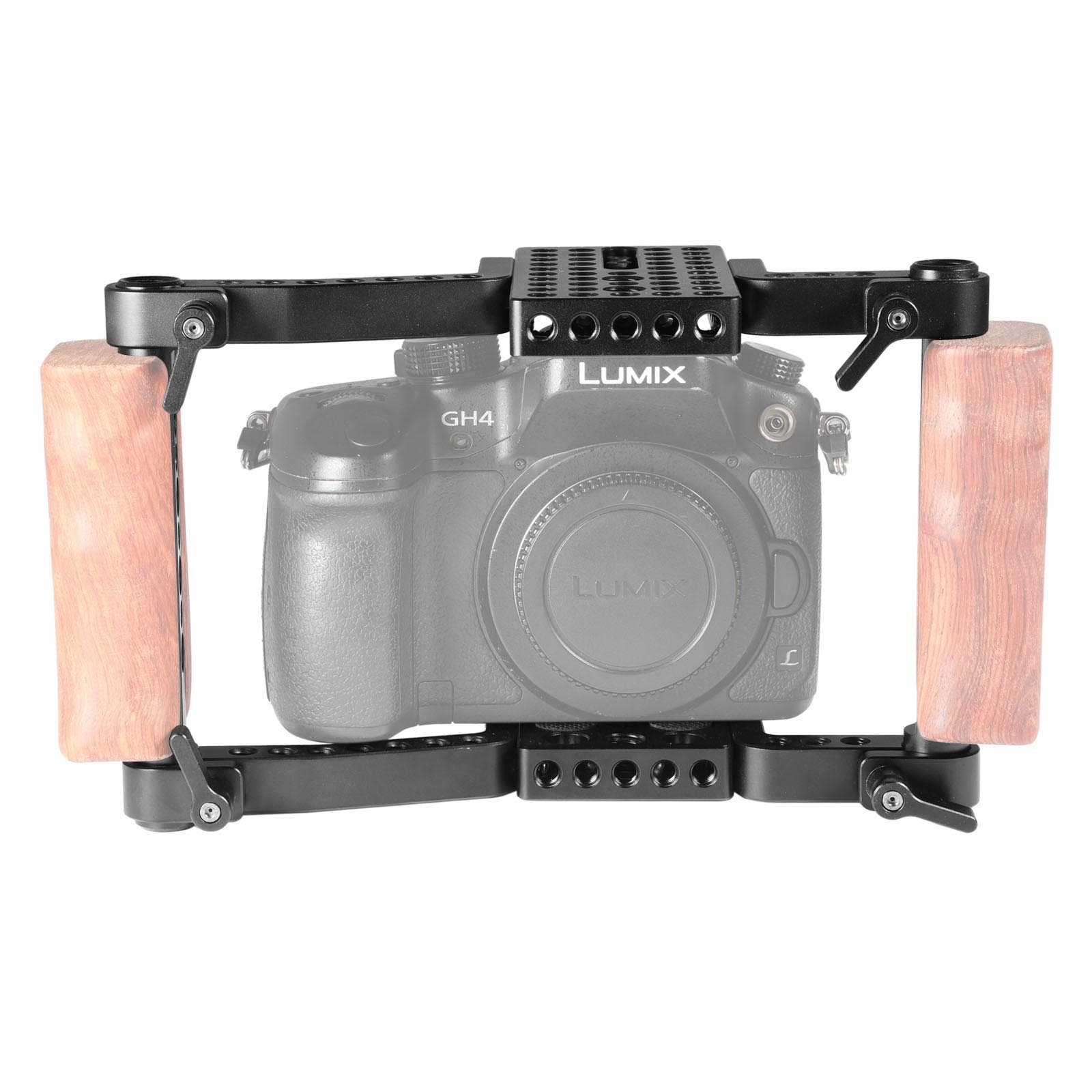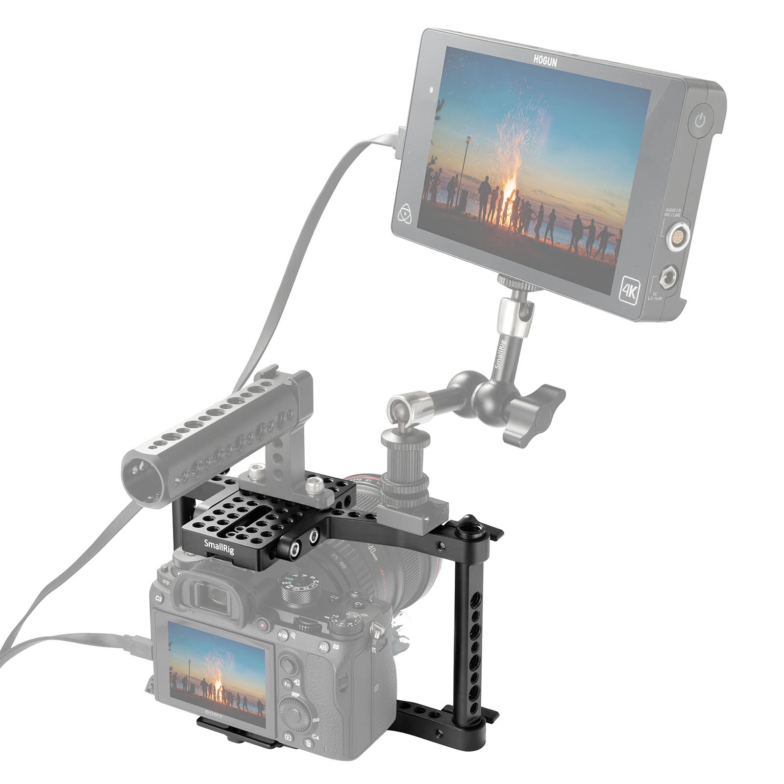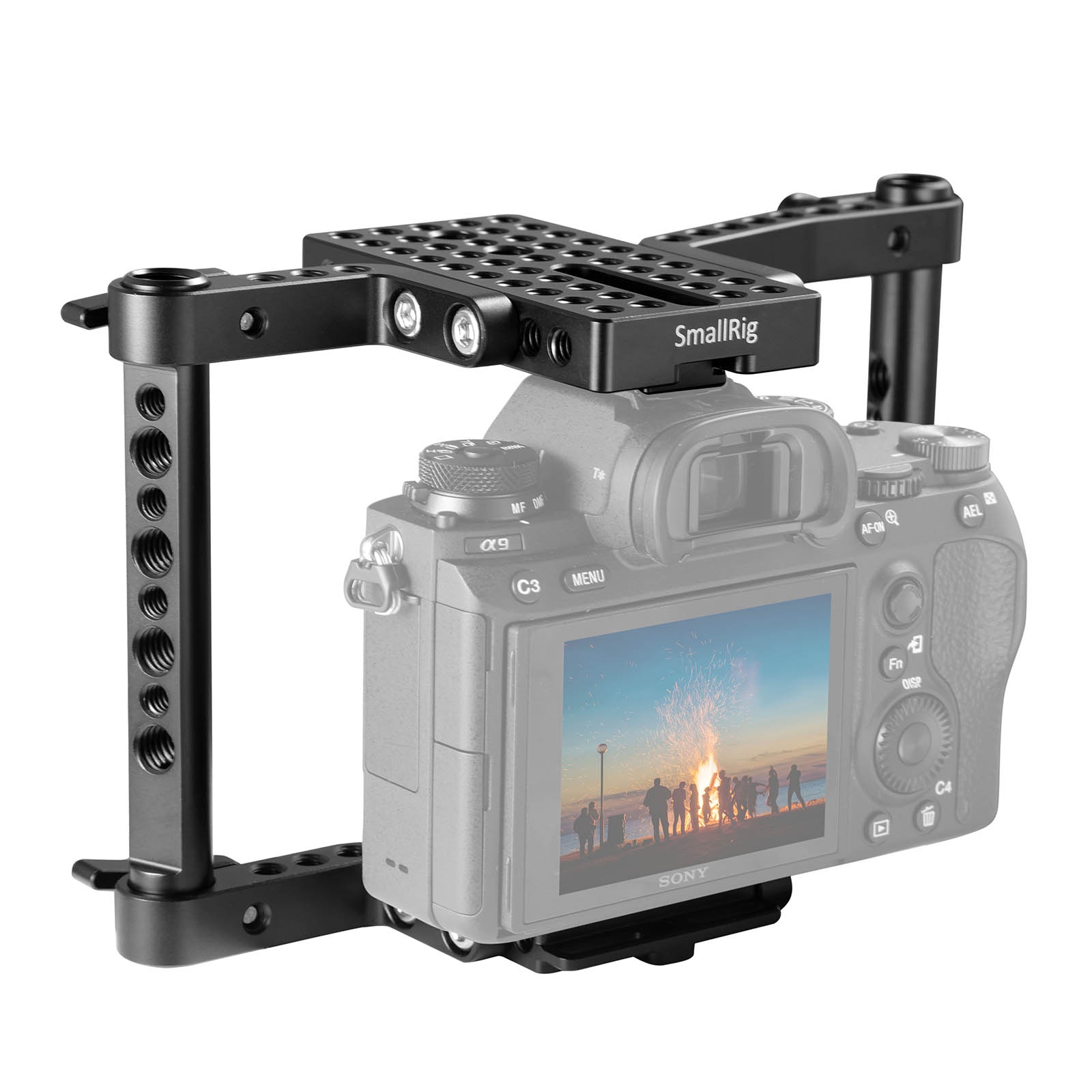The rods on both sides let you go handheld right away.Both rods can be adjusted in height and position around the camera, and one side can even be completely removed if not needed.All camera connections, buttons, dials and the battery door remain fully accessible. Our custom hotshoe pinch connects your camera into one solid piece with the cage. Plenty of 1/4″-20 mounting threads allow for assembly of a full rig to your needs. This cage is very lightweight.