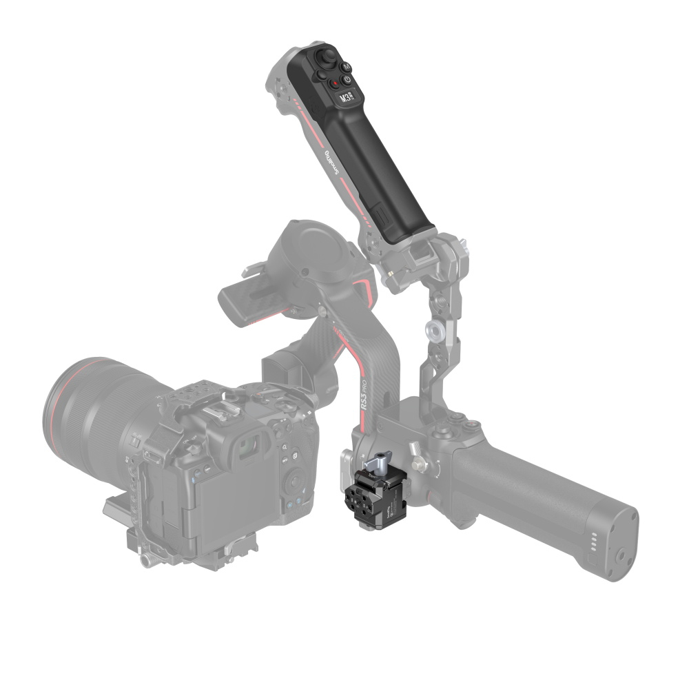 SmallRig Wireless Controller for DJI RS Series 3920, which is DJI RS 2 / RS 3 Pro compatible, supports videoing / photographing, joystick control, mode switch, centering / locking, sleep mode, etc. from a distance up to 100 meters with a less than 50ms delay, given its excellent anti-interference ability. Its battery life can last for 10 hours, long enough for photographing all day. The wireless controller is quickly installed and released via magnets, the wireless controller supports Sling Handgrip 3919, Dual Handgrip 3027 & 3954, and a handheld ring. Its anti-off pins at the bottom, proper magnetic force, and four-way limit make for reliable, firm, seamless installation on Handle 3949. The receiver, made of aluminum alloy, features a NATO clamp and two M4 screws on the side to be mounted onto 3027, 3026, or 3025 and a locking knob for more stability.